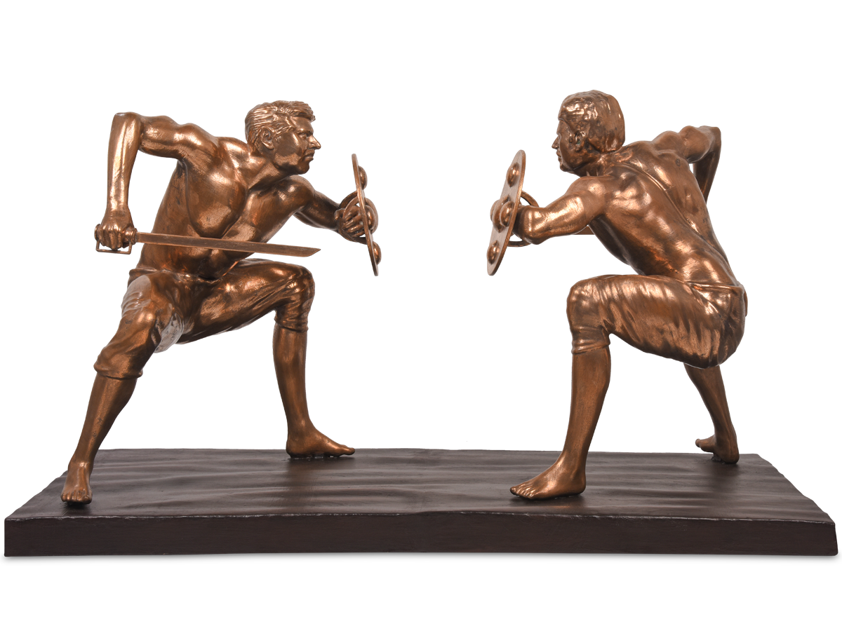 This Kalari sculpture captures the electrifying moment when two Kalaripayattu warriors lock eyes, reading their opponent’s next move in a battle of skill, strategy, and precision. The artistic finish enhances the intricate detailing, making it a powerful tribute to India’s ancient martial traditions. A must-have for collectors of Indian combat art, dynamic sculptures, and handcrafted warrior figurines.